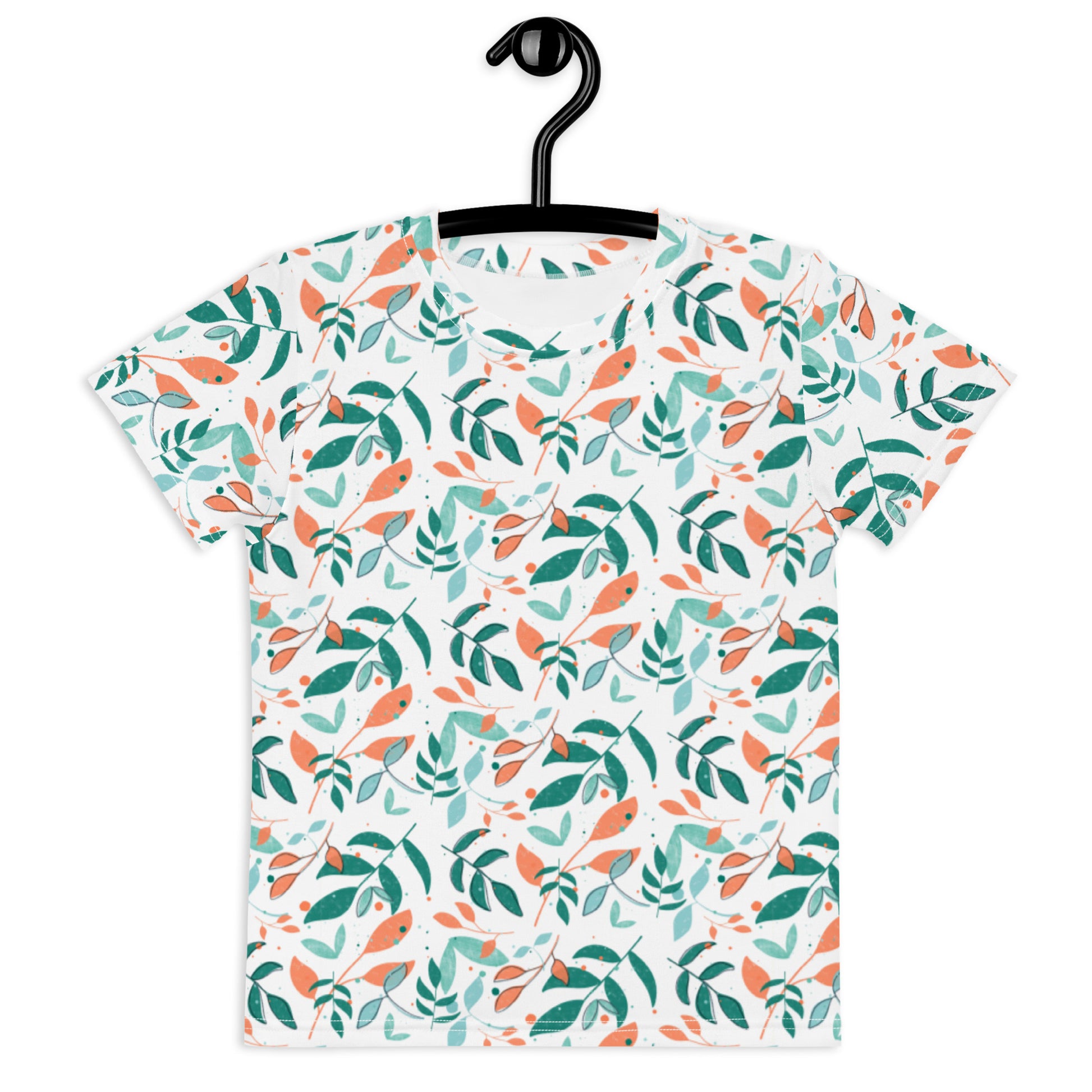 Kids crew neck t-shirt, Leaves white