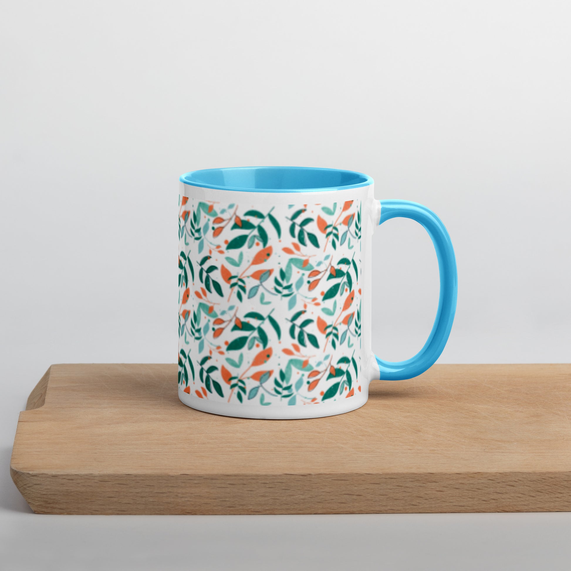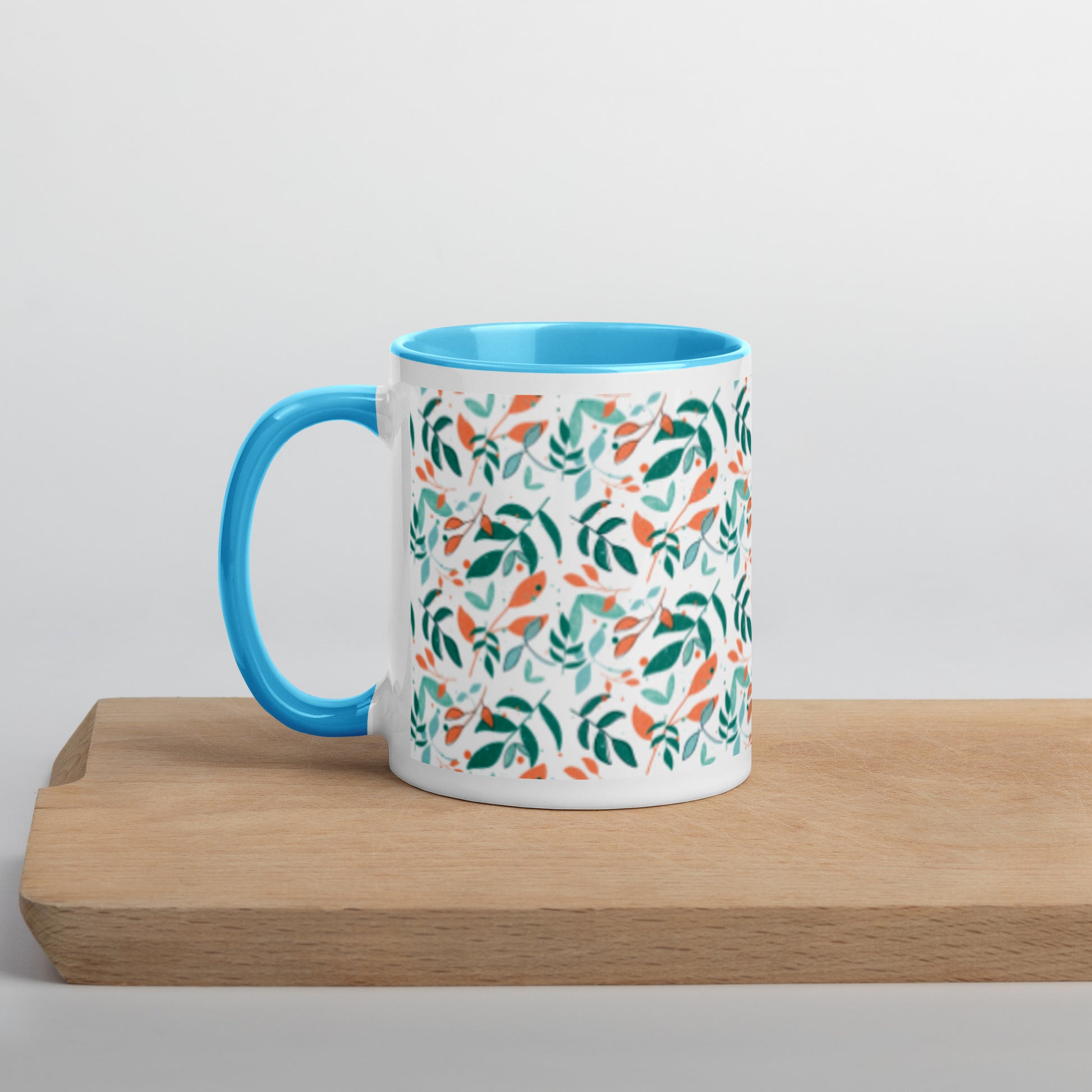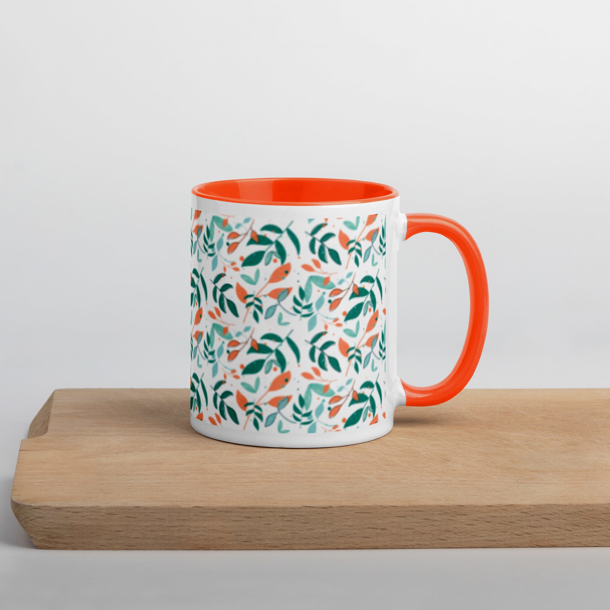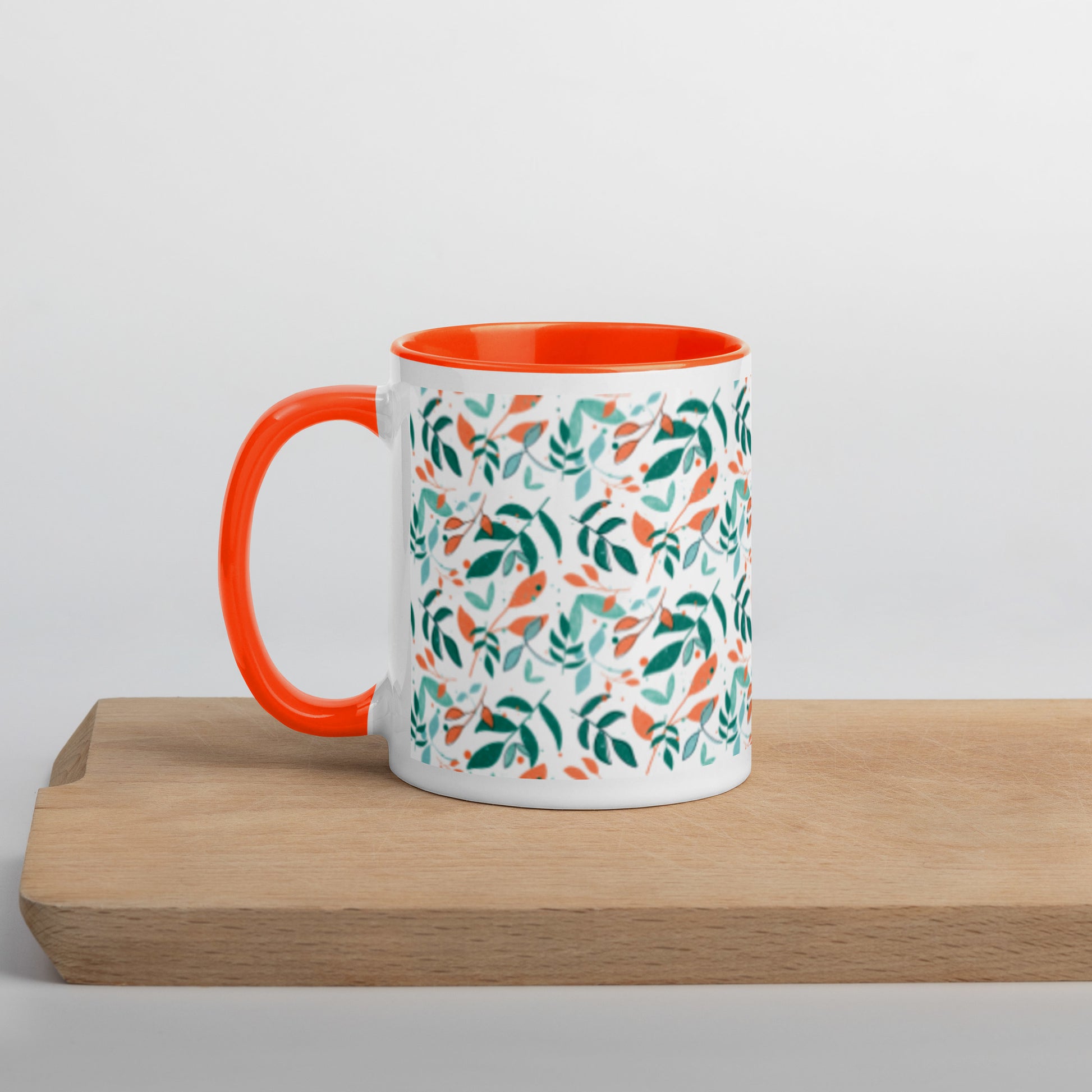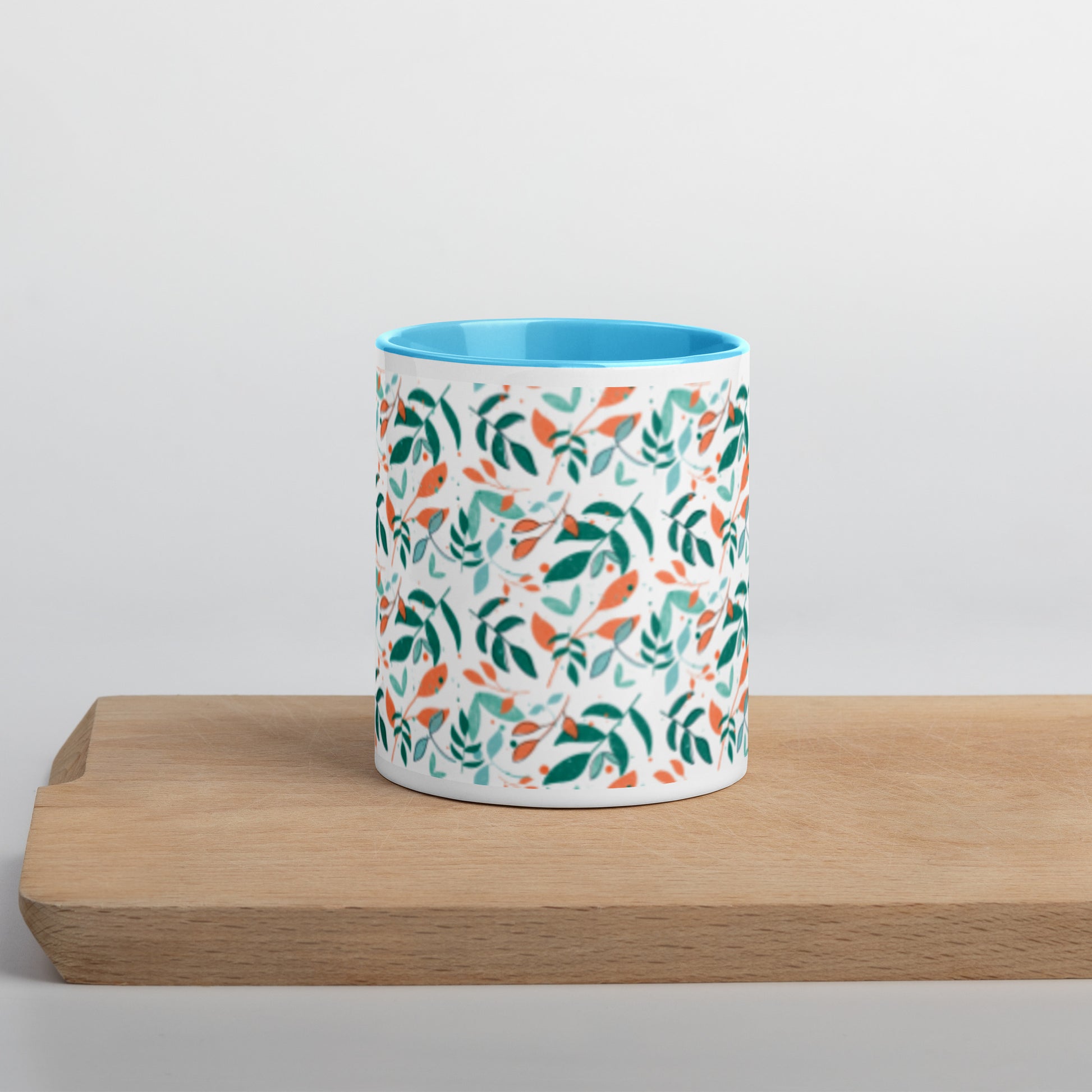 Mug with Color Inside, Leaves white