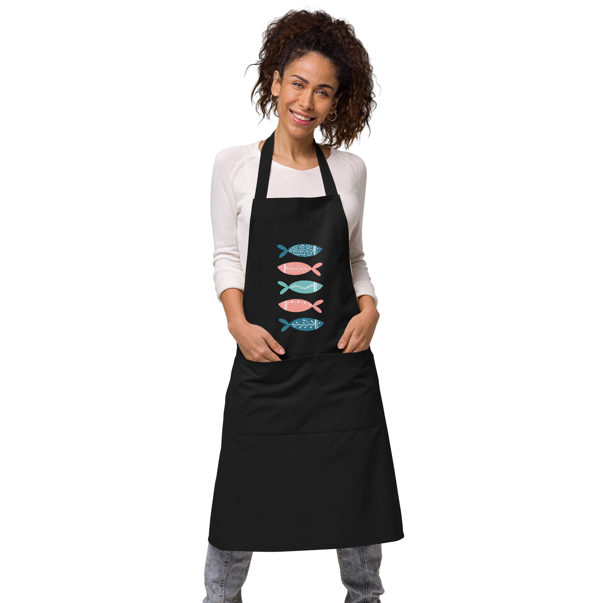 Organic cotton apron, Colorful fish