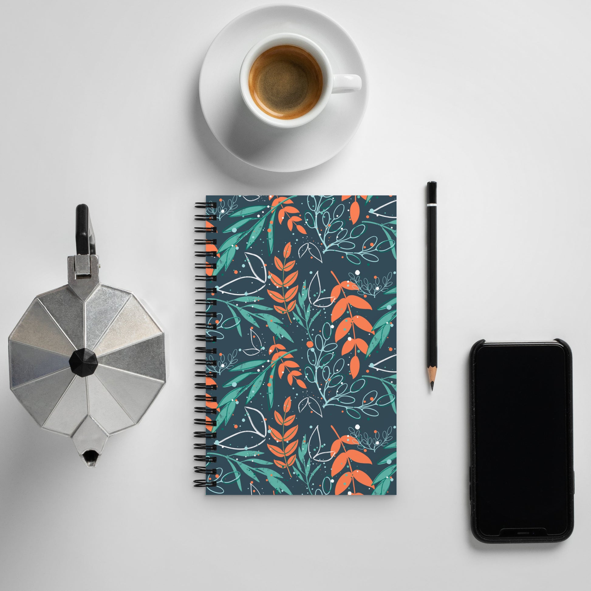 Spiral notebook, Leaves blue