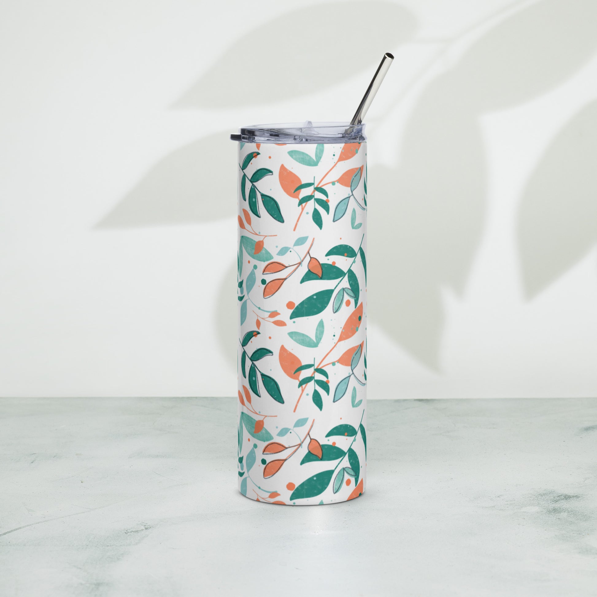Stainless steel tumbler, Leaves white