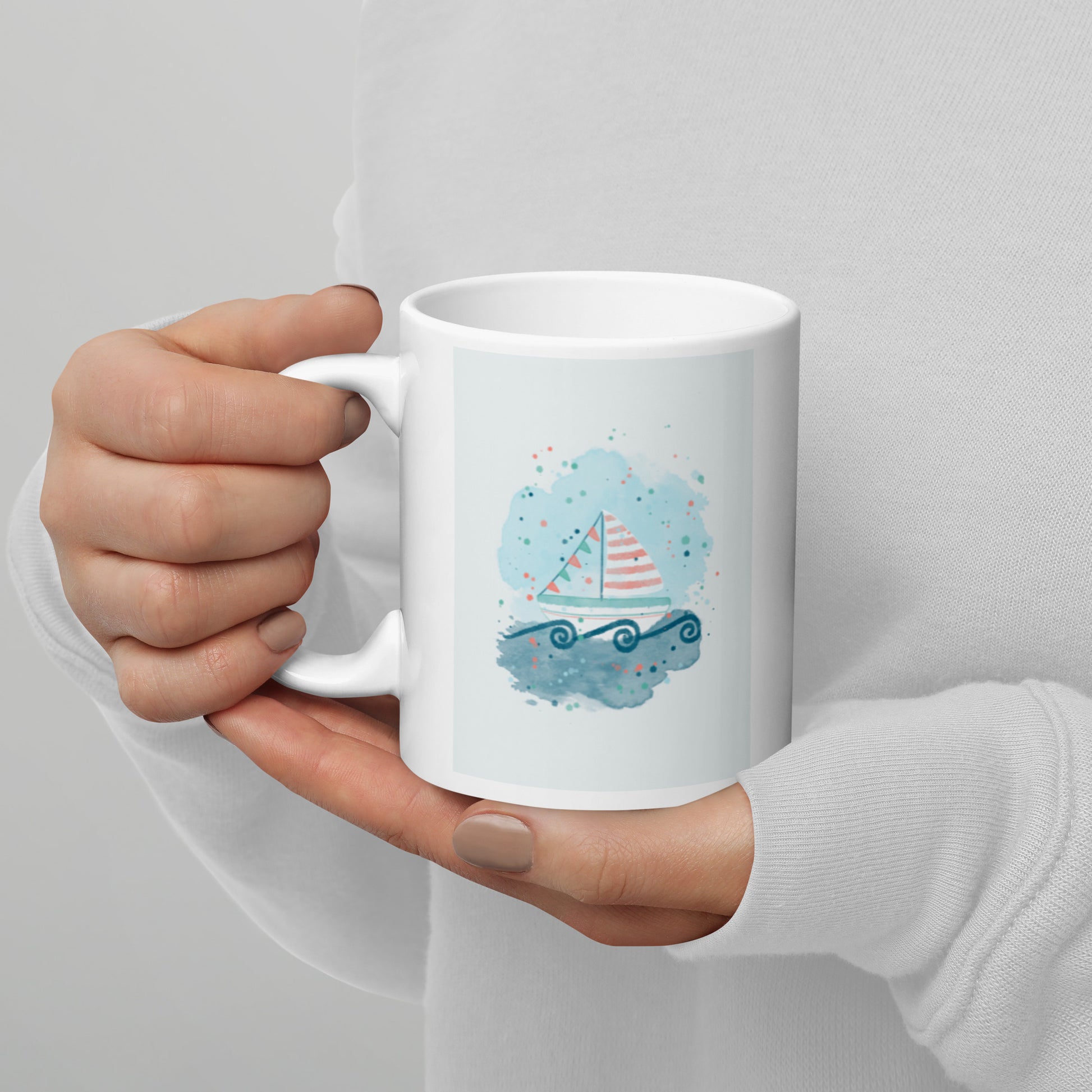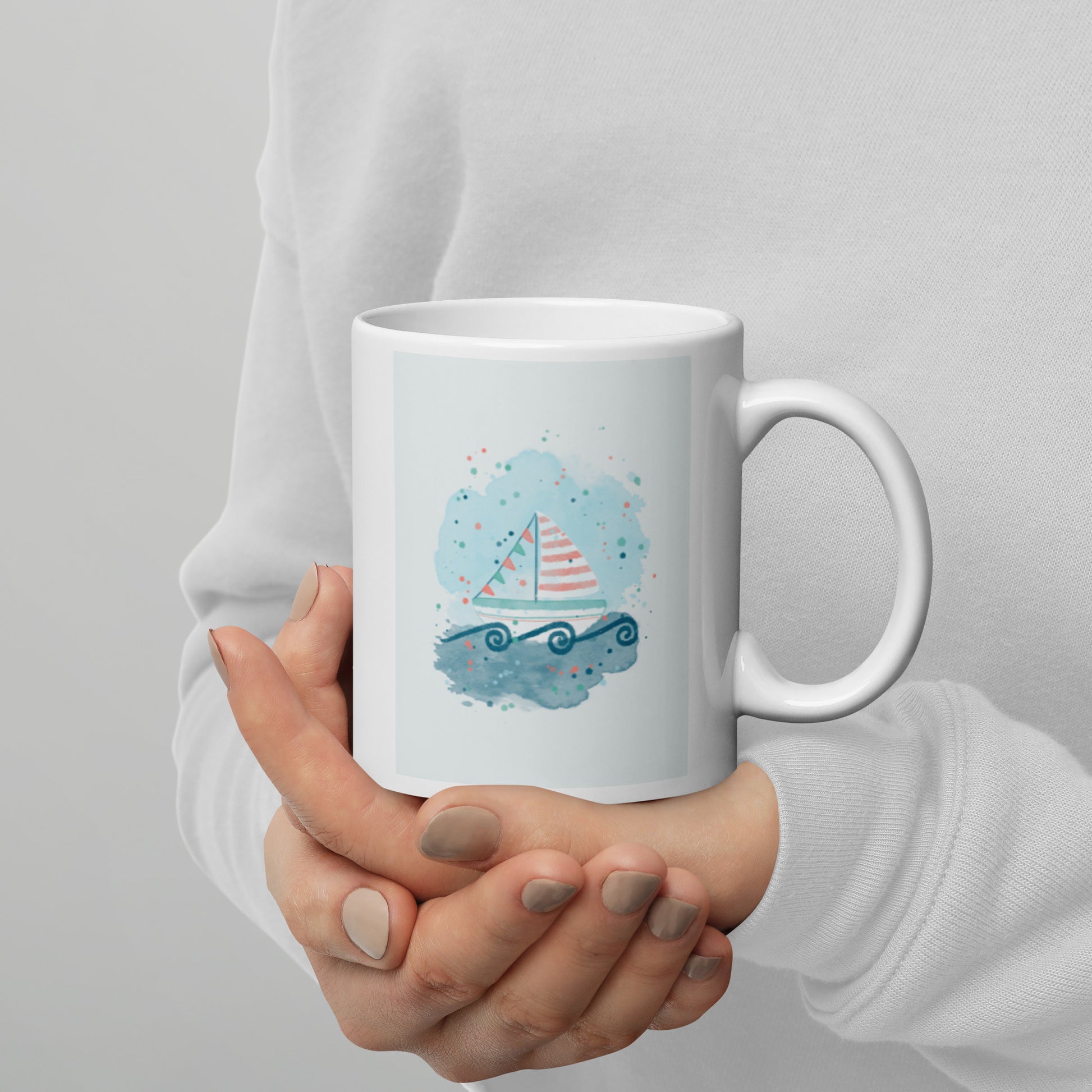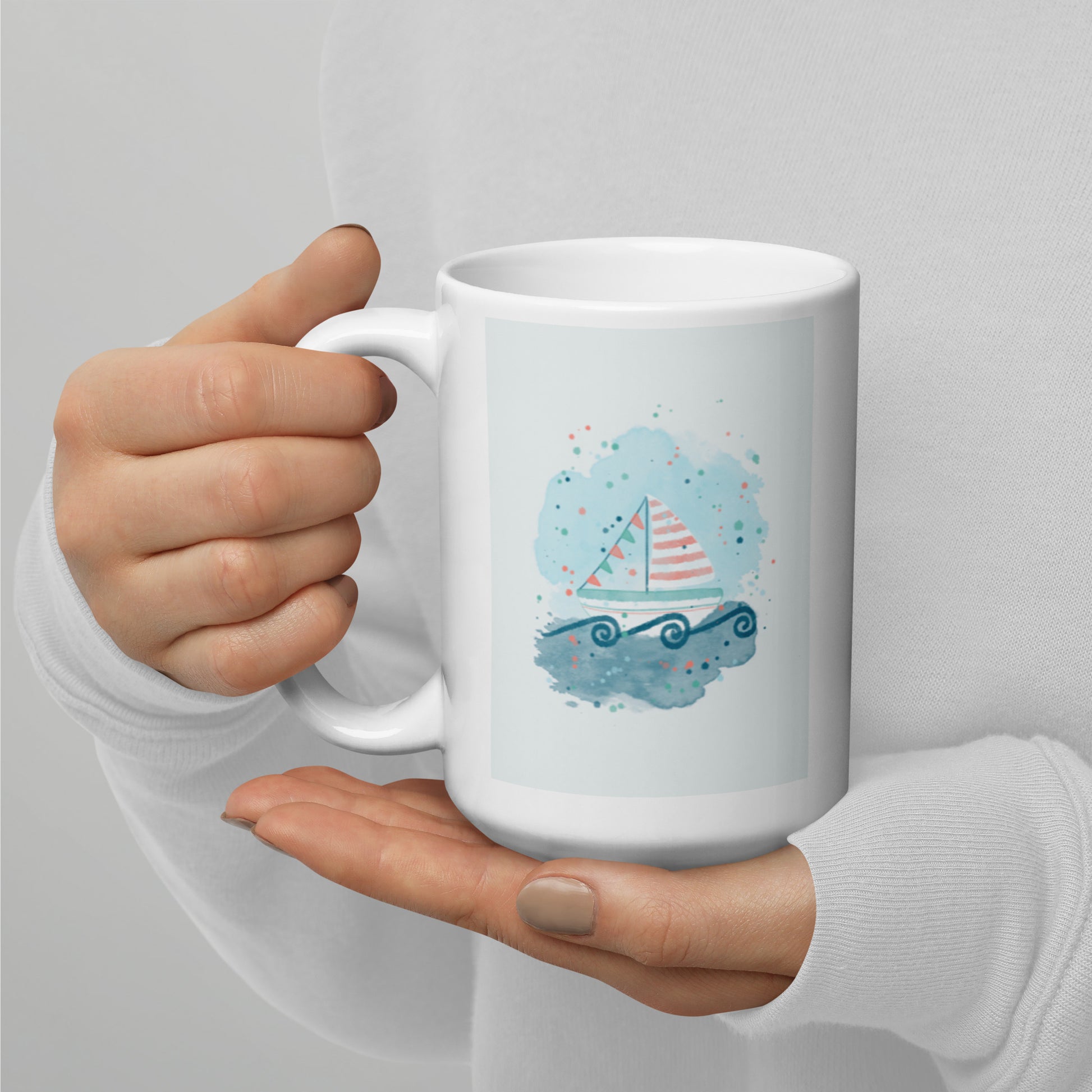 White glossy mug, Sail boat