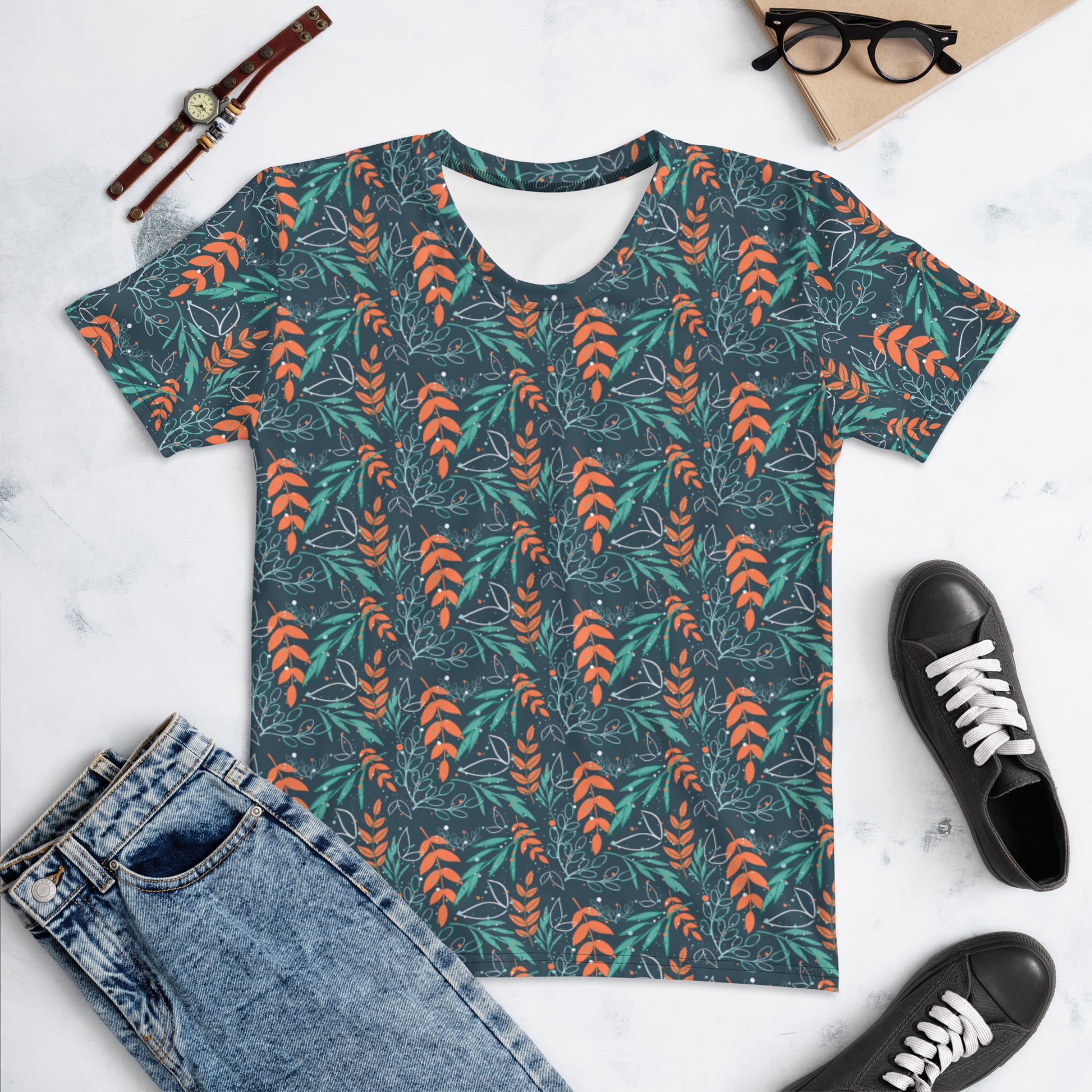 Women's T-shirt, Leaves blue